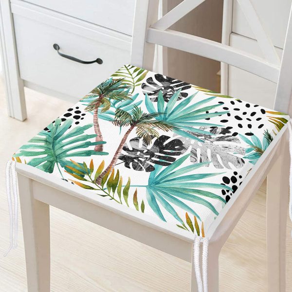Palmiye Desenli Geometrik Şekiller Fermuarlı Sandalye Minderi
