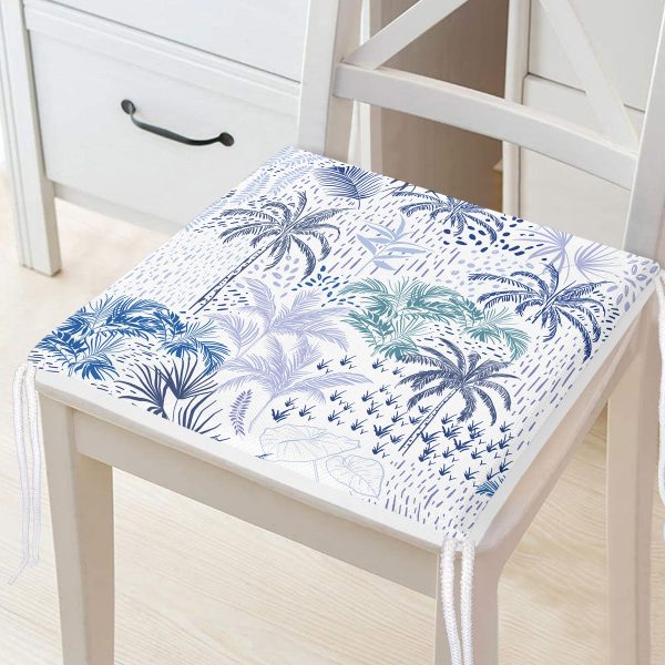 Turkuaz Palmiye Çizimli Dijital Baskılı Fermuarlı Sandalye Minderi