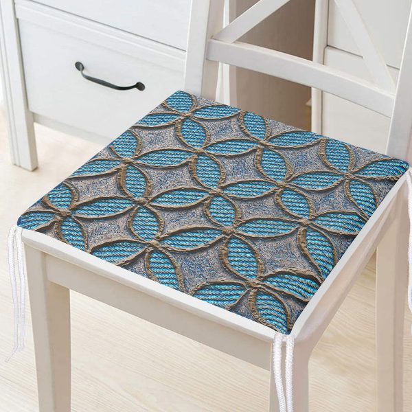 Kabartma Yüzey Geometrik Desenli Dijital Baskılı Fermuarlı Sandalye Minderi