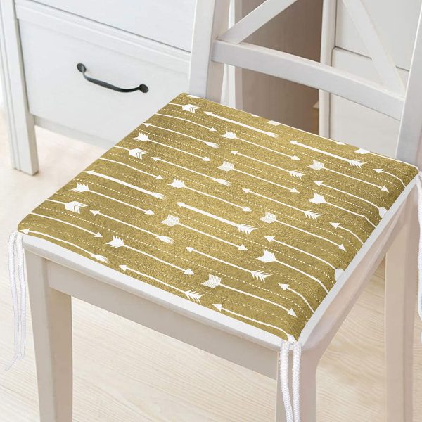 Gold Zeminde Ok Çizimli Dijital Baskılı Modern Fermuarlı Sandalye Minderi