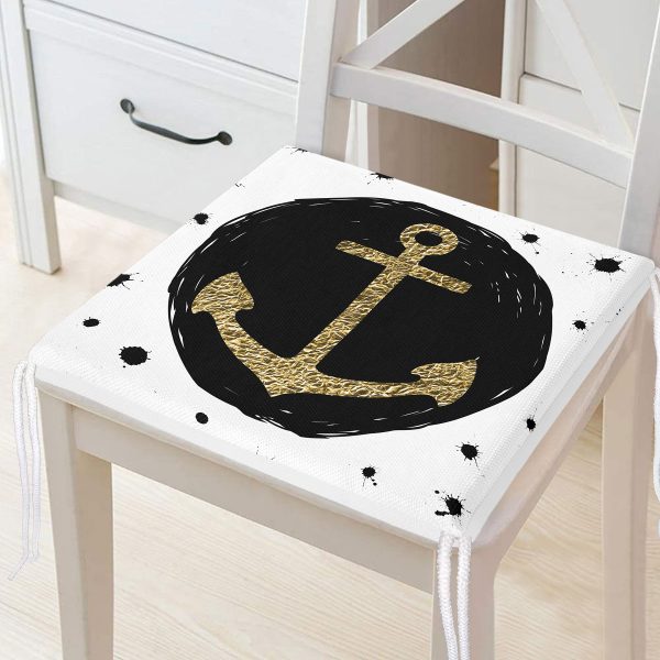Siyah Zemin Üzerinde Gold Çapa Desenli Dijital Baskılı Modern Fermuarlı Sandalye Minderi