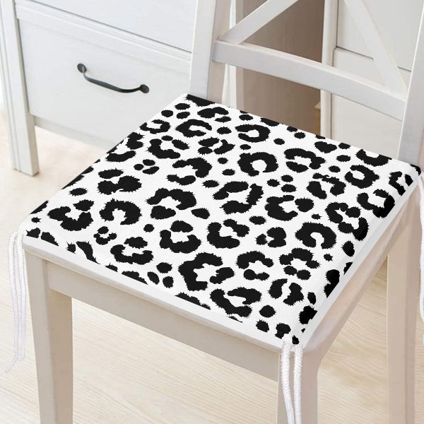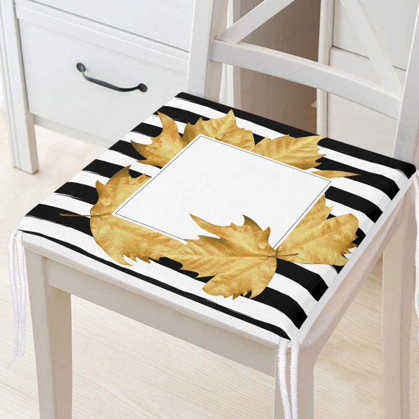 Beyaz Zeminde Siyah Çizgili Sonbahar Yaprak Desenli Dijital Baskılı Modern Fermuarlı Sandalye Minderi