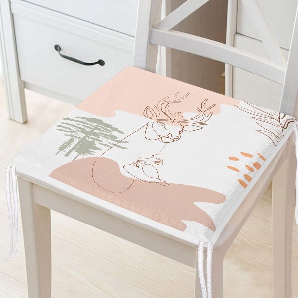 Beyaz Zeminde Geyik Desenli Bayan Silüeti Dijital Baskılı Modern Fermuarlı Sandalye Minderi