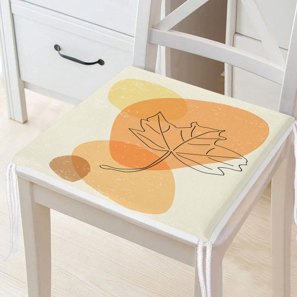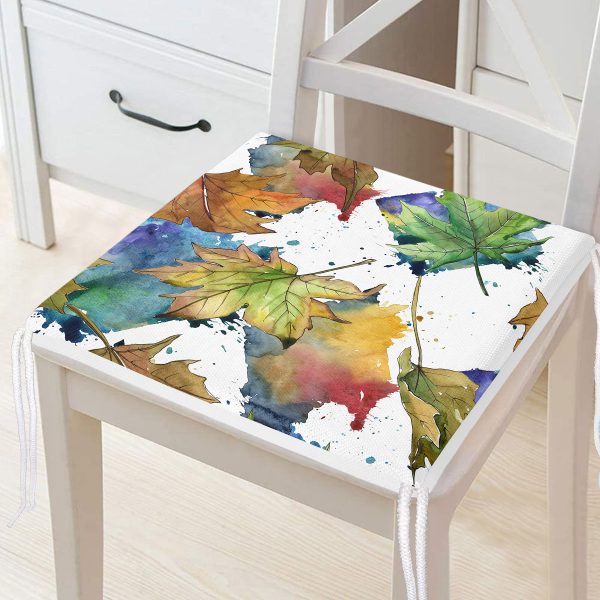 Beyaz Zemin Üzerinde Sonbahar Yaprak Desenli Dijital Baskılı Modern Fermuarlı Sandalye Minderi