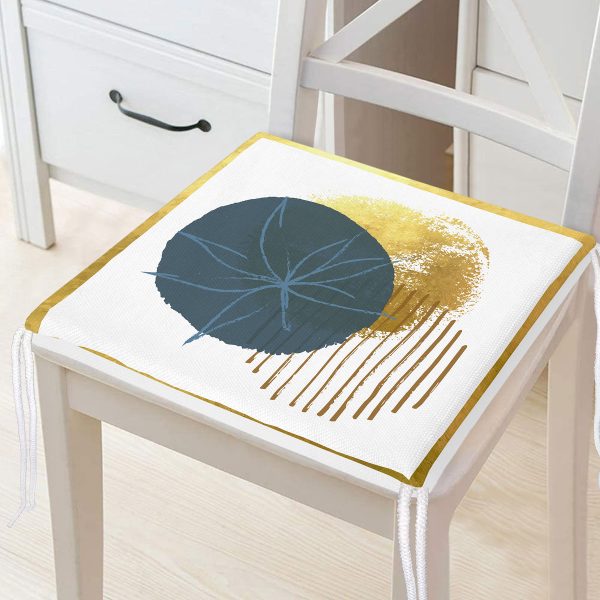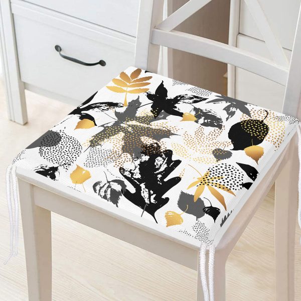 Beyaz Zemin Üzerinde Gold Detaylı Yaprak Desenli Dijital Baskılı Modern Fermuarlı Sandalye Minderi
