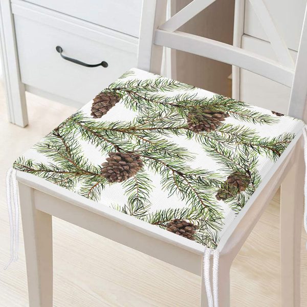 Beyaz Zemin Üzerinde Kozalak Desenli Dijital Baskılı Modern Fermuarlı Sandalye Minderi