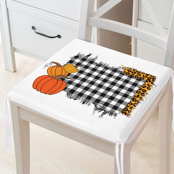Beyaz Zemin Üzerinde Ekose Desenli Bal Kabağı Motifli Dijital Baskılı Modern Fermuarlı Sandalye Minderi