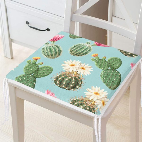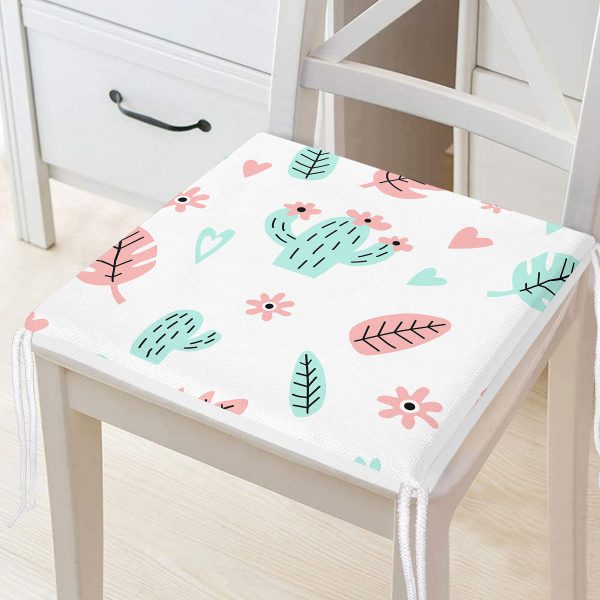 Renkli Zemin Üzerinde Kaktüs Desenli Dijital Baskılı Modern Fermuarlı Sandalye Minderi