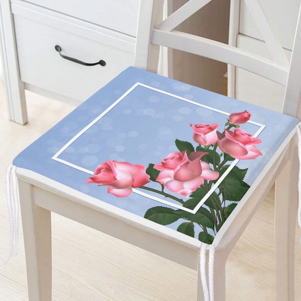 Özel Tasarım Gül Tasarımlı Dijital Baskılı Modern Fermuarlı Sandalye Minderi