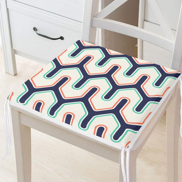 Renkli Geometrik Desenli Dijital Baskılı Modern Fermuarlı Sandalye Minderi