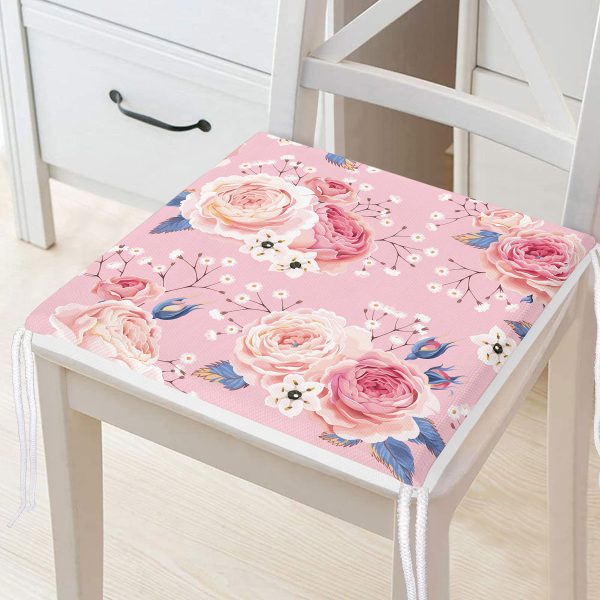 Pudra Temalı Kanaviçe Dijital Baskılı Fermuarlı Sandalye Minderi