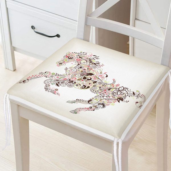 Midilli Motifli Dijital Baskılı Fermuarlı Sandalye Minderi