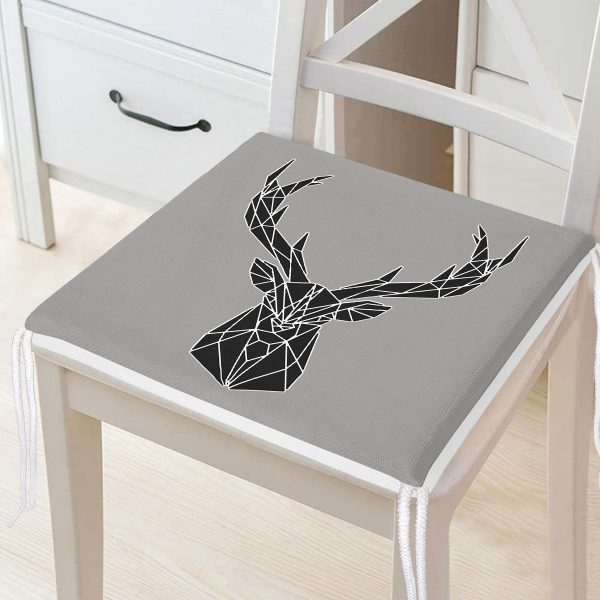 Gri Zeminde Geometrik Geyik Çizimli Modern Fermuarlı Sandalye Minderi