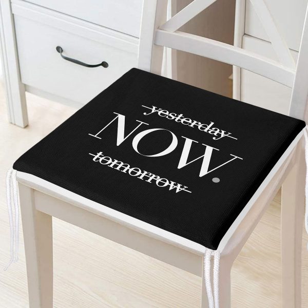 Siyah Zeminde NOW Yazılı Modern Fermuarlı Sandalye Minderi