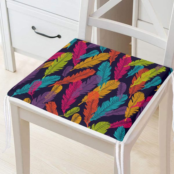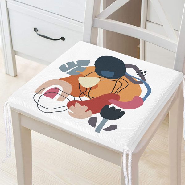 Renkli Zemin Üzerinde Beyaz Yaprak Desenli Dijital Baskılı Modern Fermuarlı Sandalye Minderi