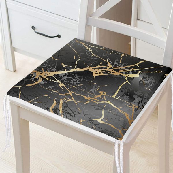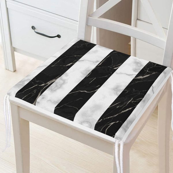 Mermer Zeminli Siyah Çizgili Dijital Baskılı Modern Fermuarlı Sandalye Minderi