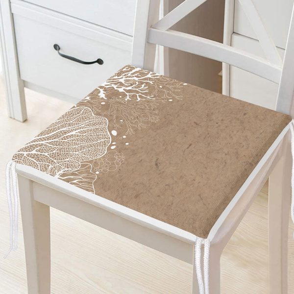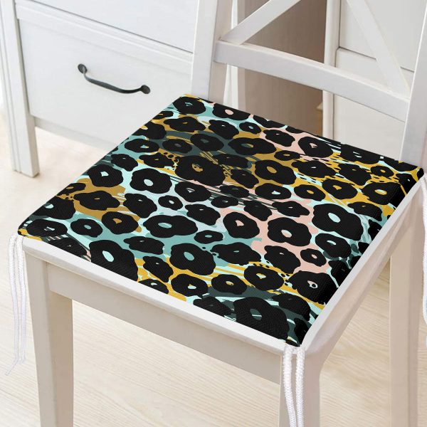 Yaprak Ve Geometrik Desenli Dijital Baskılı Fermuarlı Sandalye Minderi