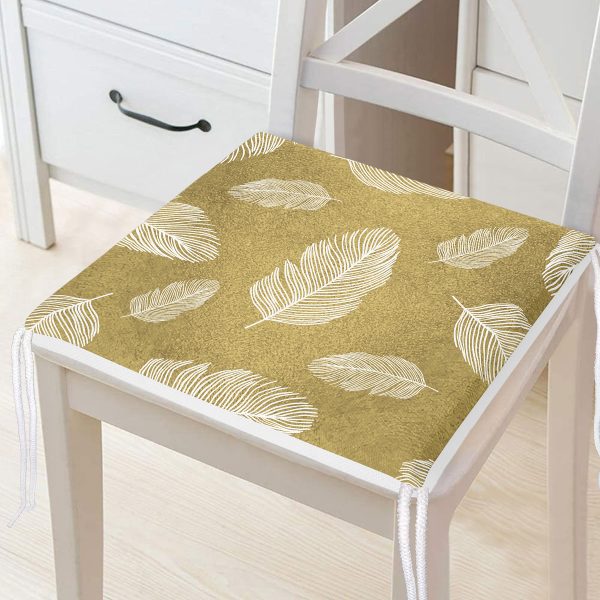 Gold Zemin Üzerinde Beyaz Renkli Yaprak Desenli Dijital Baskılı Modern Fermuarlı Sandalye Minderi