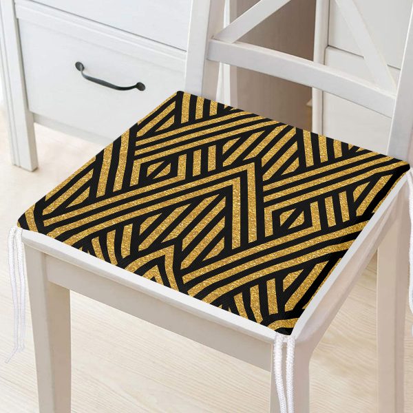 Gold Zemin Üzerinde Siyah Geometrik Desenli Dijital Baskılı Modern Fermuarlı Sandalye Minderi