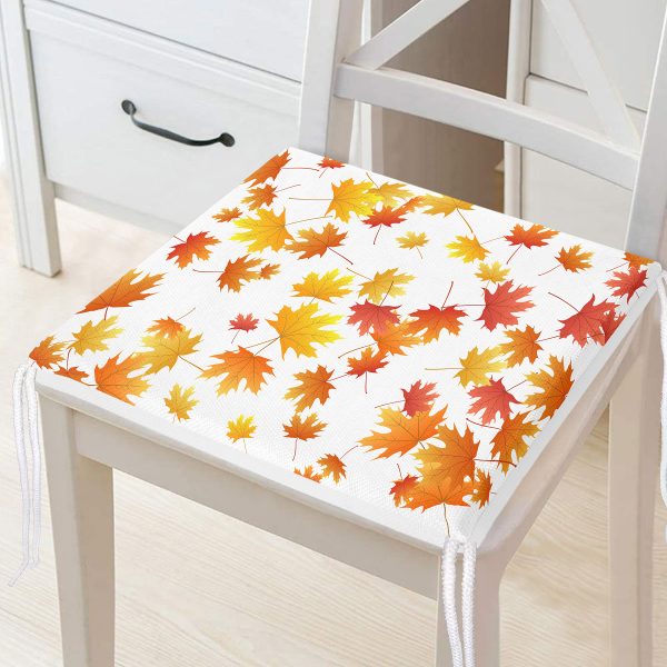 Beyaz Zemin Üzerinde Sonbahar Yaprak Desenli Dijital Baskılı Modern Fermuarlı Sandalye Minderi