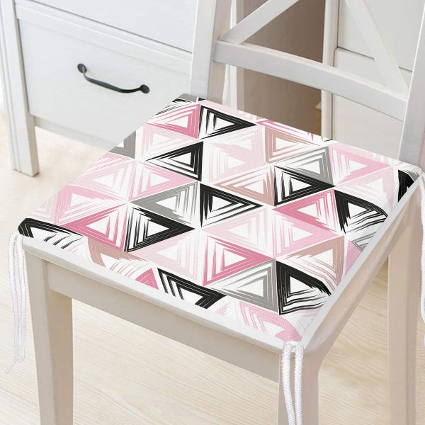 Renkli Üçgen Motifler Dijital Baskılı Fermuarlı Sandalye Minderi