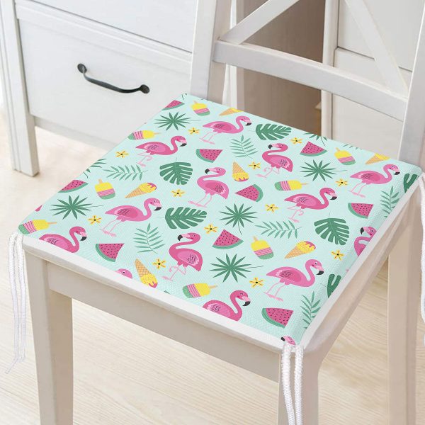 Summer Flamingo Motifli Özel Tasarım Dijital Baskılı Fermuarlı Sandalye Minderi