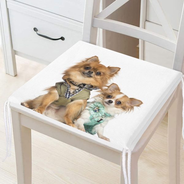 Sevimli Köpekler Dijital Baskılı Modern Fermuarlı Sandalye Minderi