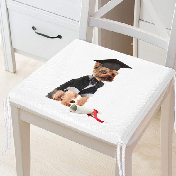 Mezuniyet Kıyafetli Köpekçik Dijital Baskılı Modern Fermuarlı Sandalye Minderi