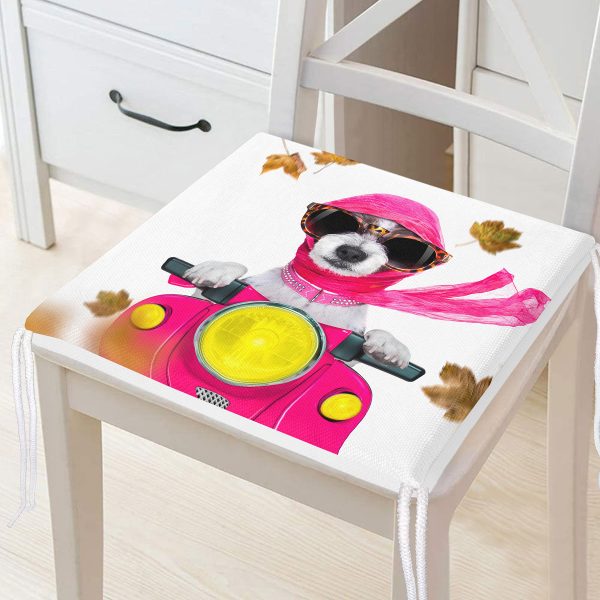 Motor Süren Çılgın Köpek Dijital Baskılı Modern Fermuarlı Sandalye Minderi