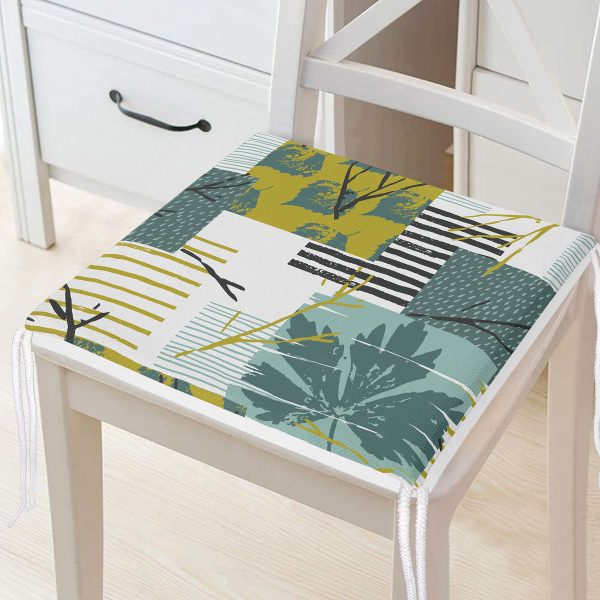 Yaprak Ve Geometrik Desenli Dijital Baskılı Fermuarlı Sandalye Minderi