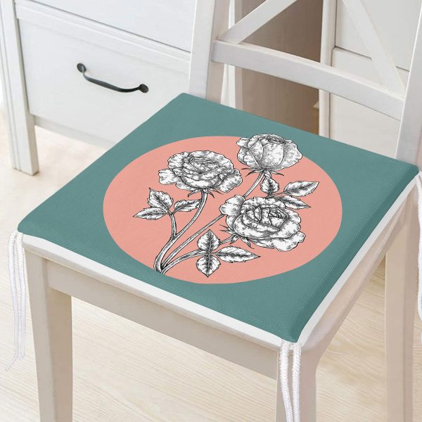 Modern Sümbül Desenli Dijital Baskılı Fermuarlı Sandalye Minderi