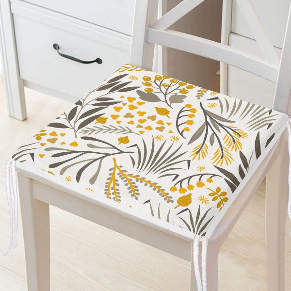 Sarı Detaylı Çiçek Temalı Dijital Baskılı Modern Fermuarlı Sandalye Minderi