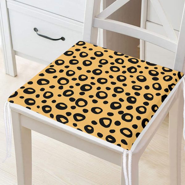 Gold Zemin Üzerinde Siyah Geometrik Desenli Dijital Baskılı Modern Fermuarlı Sandalye Minderi