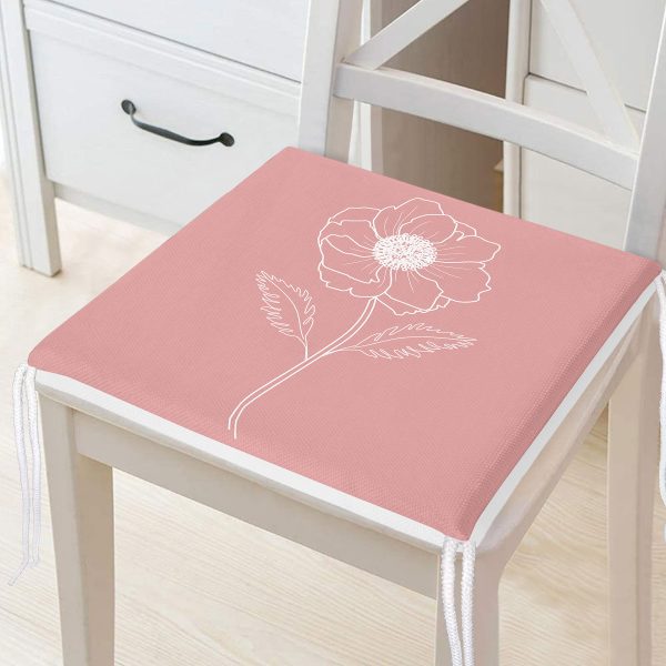 Pastel Zemin Üzerinde Beyaz Çiçek Desenli Dijital Baskılı Modern Fermuarlı Sandalye Minderi