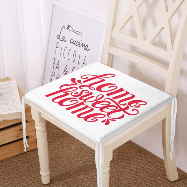 Kırmızı Home Sweet Home Dijital Modern Fermuarlı Sandalye Minderi