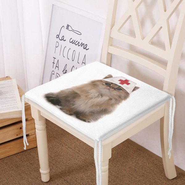 Hemşire Şapkalı Sevimli Kedi Dijital Baskılı Modern Fermuarlı Sandalye Minderi