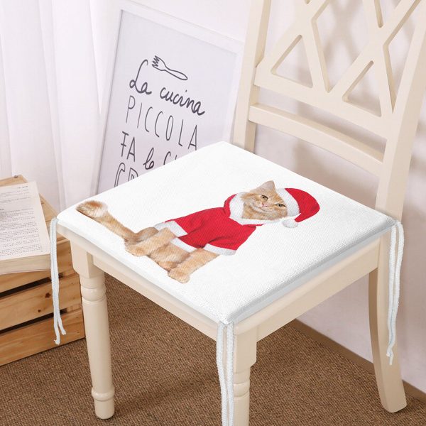 Yılbaşı Kıyafetli Kedi Desenli Dijital Baskılı Modern Fermuarlı Sandalye Minderi