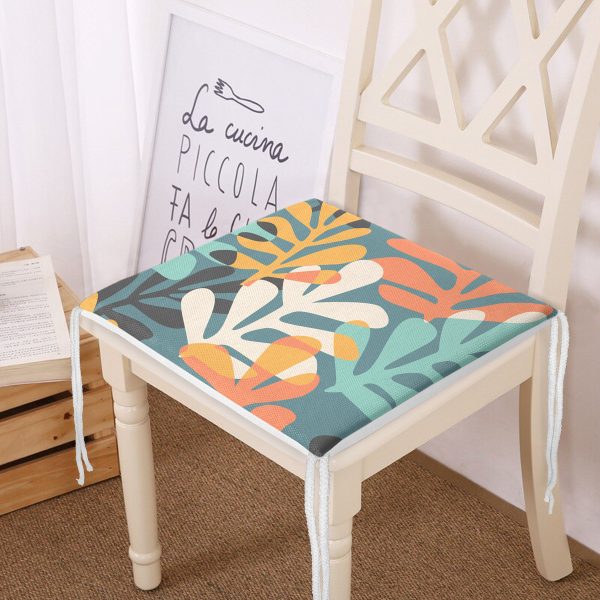 Renkli Zeminde Yaprak Motifli Dijital Baskılı Modern Fermuarlı Sandalye Minderi