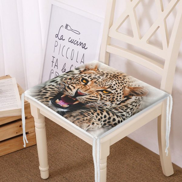Leopar Resimli Dijital Baskılı Fermuarlı Sandalye Minderi