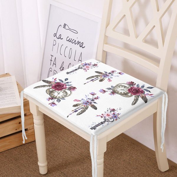 Cep Saati Çizimli Anahtar Motifli Dijital Baskılı Fermuarlı Sandalye Minderi