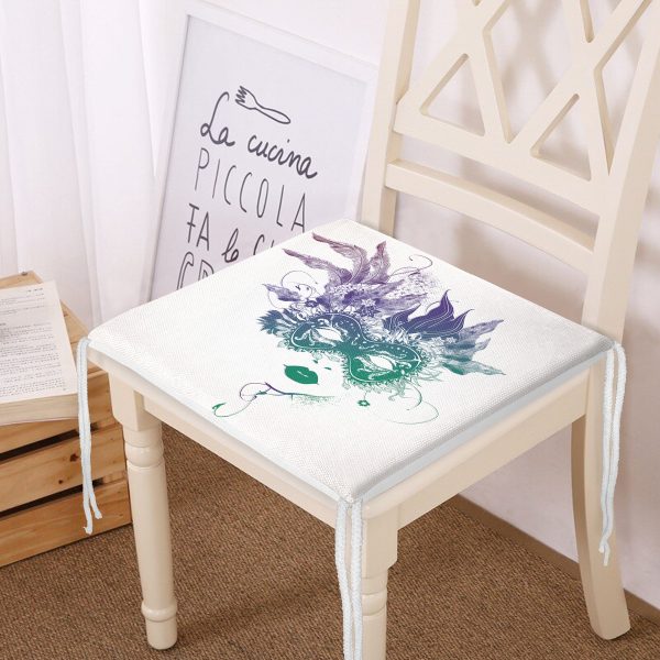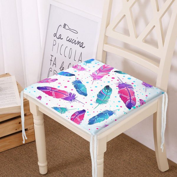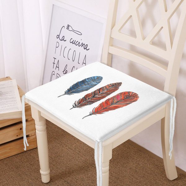 Beyaz Zeminde Üç Renkli Tüy Desenli Fermuarlı Sandalye Minderi