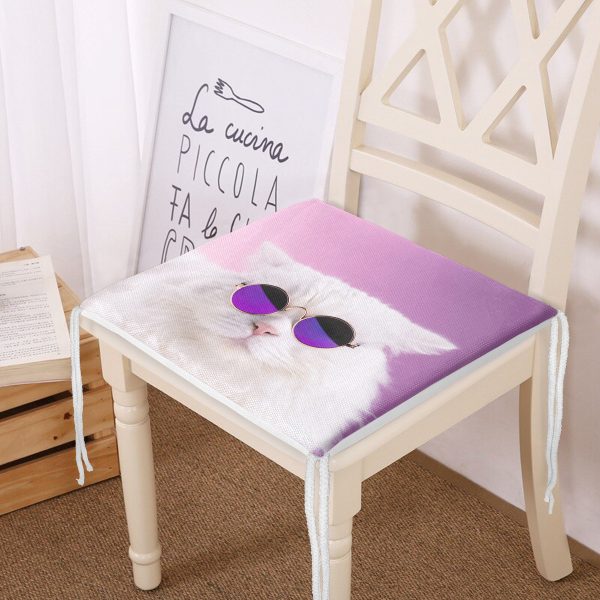 Gözlüklü Kedi Desenli Dijital Baskılı Modern Fermuarlı Sandalye Minderi