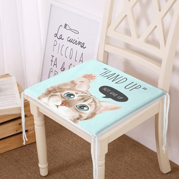 Sevimli Kedi Desenli Dijital Baskılı Modern Fermuarlı Sandalye Minderi