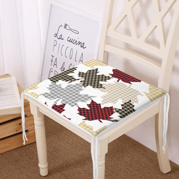 Beyaz Zemin Üzerinde Ekoseli Yaprak Desenli Dijital Baskılı Modern Fermuarlı Sandalye Minderi