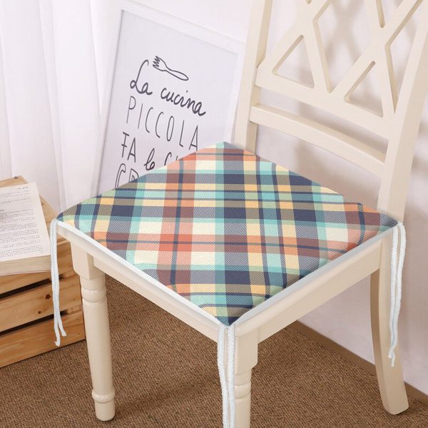Renkli Zemin Üzerinde Pastel Renkli Ekose Desenli Dijital Baskılı Modern Fermuarlı Sandalye Minderi