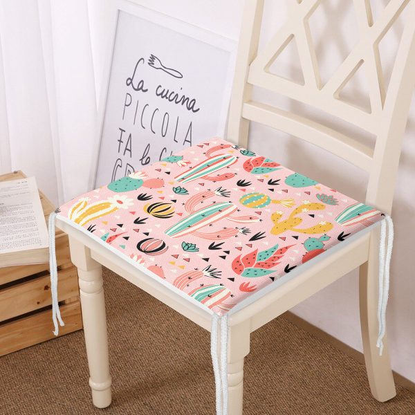 Renkli Zemin Üzerinde Kaktüs Desenli Dijital Baskılı Modern Fermuarlı Sandalye Minderi