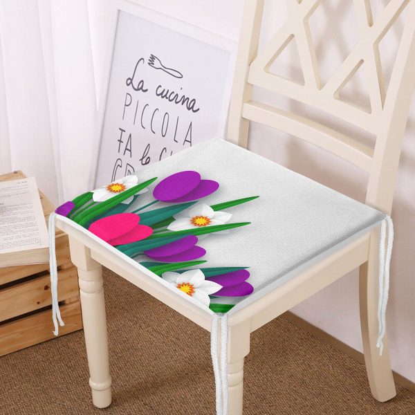 Lila Renk Begonya Motifli Dijital Baskılı Fermuarlı Sandalye Minderi
