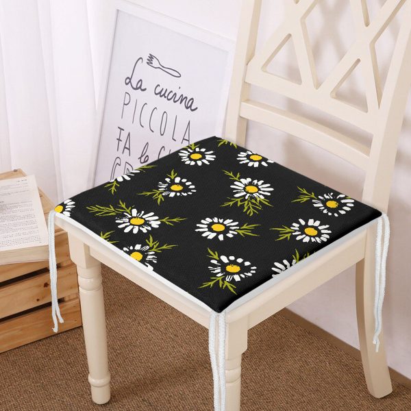 Siyah Zemin Üzerinde Papatya Desenli Dijital Baskılı Modern Fermuarlı Sandalye Minderi
