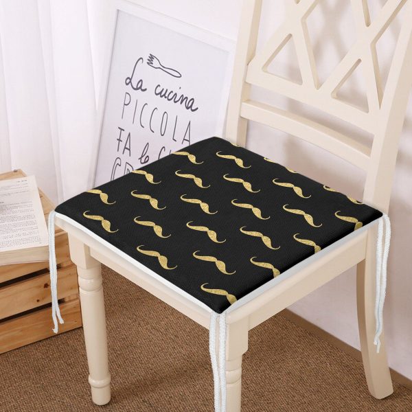 Siyah Zemin Üzerinde Gold Detaylı Çizim Dijital Baskılı Modern Fermuarlı Sandalye Minderi