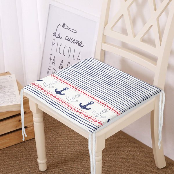 Beyaz Zemin Üzerinde Renkli Çizgili Çapa Desenli Dijital Baskılı Modern Fermuarlı Sandalye Minderi